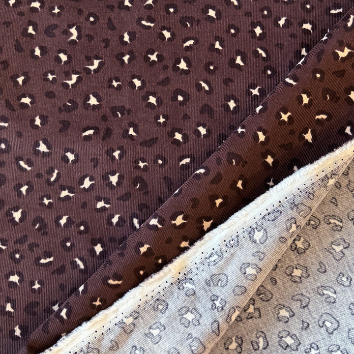 Velours milleraie marron léopard écru