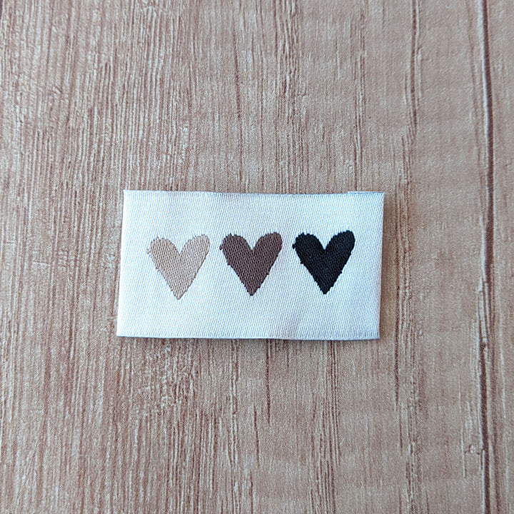 Etiquette à coudre - Trio de coeurs marron