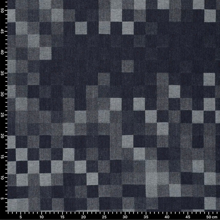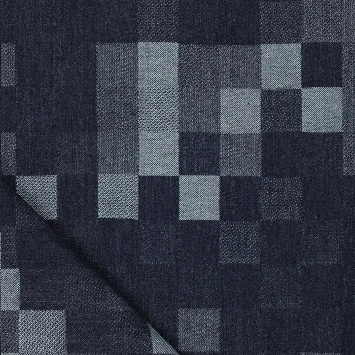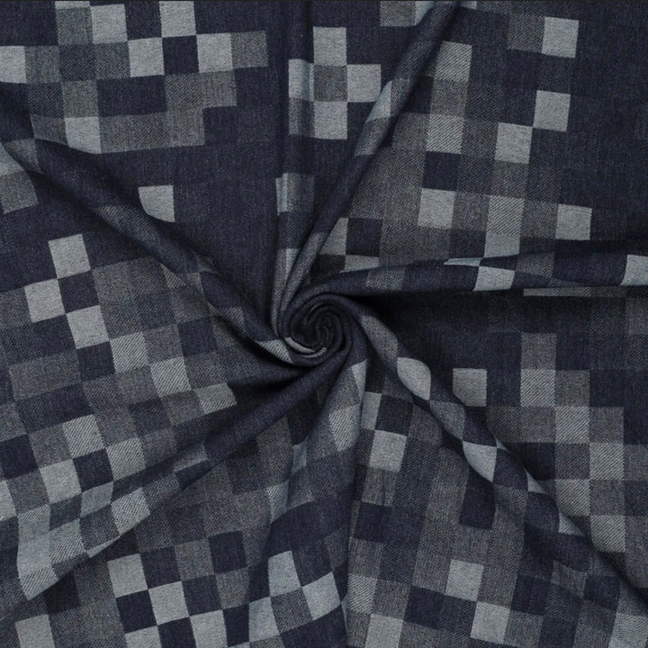 Superbe jean jacquard brut ! Il ne s'agit donc pas d'une impression mais de carrés créés grâce au tissage des fils.